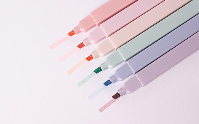 안개를 담은 형광펜입니다. 매트한 플라스틱 재질에 분홍색부터 보라색까지 이르는 뮤트 톤의 색상을 넣어 부드러우면서도 차분한 안개의 모습을 표현했습니다.
