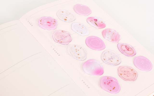 The Milky Pink sealing wax sticker captures warm and lovely emotions through a blend of pink hues in various tones. It is a sticker that faithfully reflects the appearance of sealing wax crafted into diverse shapes, as if pressed directly.